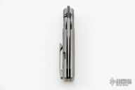 This Caballero Front Flipper by Enrique Pena features a satin finished blade with a front flipper and notched thumbrest. The handle has a titanium frame, black canvas micarta inlays with a titanium backspacer and matching tip up pocket clip. Includes a Pena X-Series padded box. New from maker!