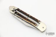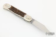 This leverlock auto by Hubertus features a mirror polished clip point blade, nickel silver double bolsters, stag scales, and brass liners and pins. Opens with a nice snap. Very fast opening. Comes with original box. New condition.