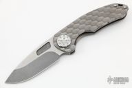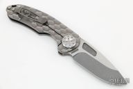 This F3 by Curtiss Knives features a stonewashed Magnacut blade with notched thumbrest. The handle has a blasted PM milled titanium frame with a matching tip up titanium clip. Satin stainless hardware. Rides on bearings, nice detent and lockup.  Comes with original box, zipper case, COA, patch and sticker pack. New condition.