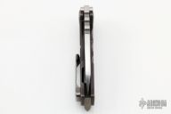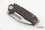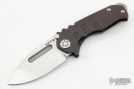 This Micro Praetorian from Medford Knife and Tool features a stonewash finished drop point blade with notched thumbrest and ambidextrous finger groove. The handle has an anodized and tumbled titanium frame with tumbled titanium tip up pocket clip. Stainless steel backspacer doubles as a glass breaker. Comes with original hard case and papers dated Jan 19, 2021. Excellent condition.