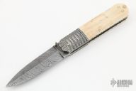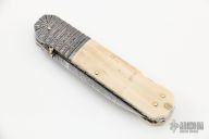 Damascus and Walrus Ivory Lockback - Gold Toothpick and Damascus Tweezers