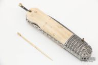 Home Products Damascus and Walrus Ivory Lockback - Gold Toothpick and Damascus Tweezers