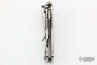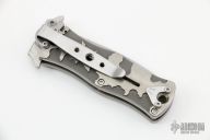 This Madd Maxx framelock assisted flipper by Darrel Ralph features a hand rub satin finish blade and satin titanium frame blasted millings. Satin stainless steel clip, tip down carry, reversible up or down. Solid lockup, detent and blade seating. Excellent condition. Comes with a zippered case.