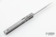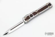 This UTX-70 by Marfione Custom Knives features a hand-ground mirror finished blade with ironwood inlays. The handle is hand sculpted two tone stainless steel body, with bronze titanium hardware, ironwood inlays and titanium button. Comes with original box, zippered case and COA. Excellent condition. 01/2022 and #006