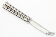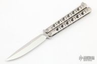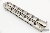 This Model 62 Balisong by Benchmade features a stonewashed spear point D2 blade with a false top edge. The handle has stainless steel handles and latch. Comes with original box, sheath and papers. Excellent condition. First Production Run #113 of 300