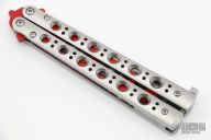 Benchmade announces the Model 62T Balisong Trainer for 2012! The BM 62T knife features a 440C Red Cerakote training blade. The handles are skeletonized to reduce weight and sport a polished stainless steel finish. Sandwich style construction with stainless steel back spacers. The 62 Bali also features Zen pins and the classic T latch to secure the knife open and closed. Made in the USA. Features: Skeletonized Handles T Latch for Easy Open Unparalleled Benchmade Fit and Finish Comes with original box and papers. Excellent Condition.