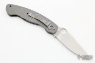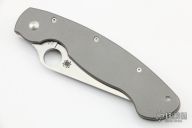 The Military folder has been in production since the 1990s in a variety of steels, materials and colors. This framelock Military folder has a satin finish S30V blade and bead blast finished titanium frame. Blade choil and thumbrest are jimped for better control. The oversized blade hole makes opening a natural and smooth action even if wearing gloves. Tip down carry. Excellent condition.