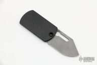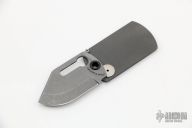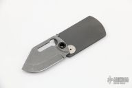 This knife features a stonewash finished nearly chisel ground blade with thumbhole. The handle has a bead blasted titanium liner with hammered copper overlay. Magnetic lock. Comes with ball chain. This is a very unique, functional design. Excellent condition. New from maker.