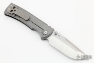 This Chaves Ultramar Redencion Drop point features a satin finished blade with the Chaves logo. The handle is made up of black G10, stonewashed titanium, skull pocket clip (positioned for tip up carry), and a matching titanium backspacer. Comes with original box and an extra regular titanium pocket clip. New from Maker!