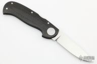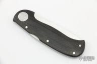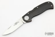 This Model 5 Utility lockback by Tommy Overeynder features a hand rub satin finished blade with nail nick. The blade is crafted from Dietmar Kresslers personal steel alloy that is heat treated to 61/62 RC. The handl ehas carbon fiber covers, stippled stainless steel pivot, stainless steel spring and backspacer. Comes with a COA dated September 28, 2009. Comes with a leather case and also a page with the Chemical Analysis for the blade steel. Excellent condition.
