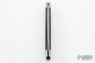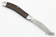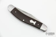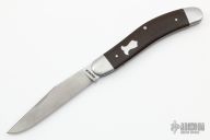 This knife by Ken Erickson features a satin finished blade with nail nick. The handle has stainless steel bolsters, brown canvas micarta covers, stainless steel escutcheon, liners and springs. Has half-stop, flush in all positions. Comes with a zippered case. Has a few light scratches, otherwise excellent condition.