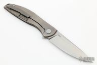 This Neon Zero by Shirogorov Knives features a stonewashed blade, mirror polish flats, with notched thumbrest and flipper. The handle has a stonewashed titanium frame with matching tip up clip. Nice detent, lockup and blade seating. Has MRBS. Comes with original box and papers. Excellent condition.