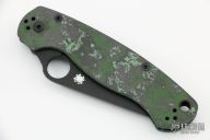 This Paramilitary 2 Linerlock Folder from Spyderco has a black finished clip point blade with thumb hole and notched thumb rest. Handle has black/green Fat Carbon scales with stainless steel liners and stainless steel 4-way reversible clip. Comes with original box and papers. Excellent condition.