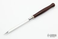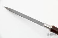This Triangle Dagger by Pat Crawford features a triangular shaped mirror polished blade that is .363" thick. The handle has a cocobolo grip with a nickel silver guard. Excellent condition.