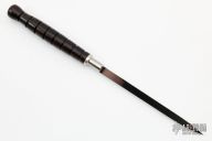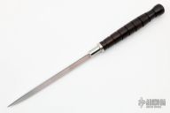 This Triangle Dagger by Pat Crawford features a triangular shaped mirror polished blade that is .368" thick. The handle has a cocobolo grip with a nickel silver guard. Excellent condition.