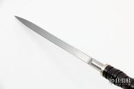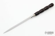 This Triangle Dagger by Pat Crawford features a triangular shaped mirror polished blade that is .361" thick. The handle has a cocobolo grip with a nickel silver guard. Excellent condition.