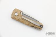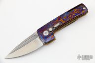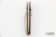 The Harlock is a stout and stylish EDC automatic knife from D Rocket Designs. This model has a MokuTi and Mokume handle and a satin finished blade, tip up titanium clip. The clean modern design is accentuated by satin polished hardware, safety, and push button. Excellent condition. Comes with original box.