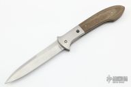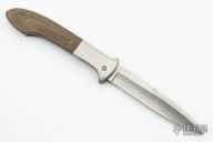 "Ever since I can remember I have had a fascination with knives. My grandfather gave me my first pocketknife when I was 5, and it was that moment that did it. I started making knives by taking apart my mothers kitchen knives. My parents thought that there was something "wrong" with me because I had a fascination with sharp objects. That all changed when I took them to a local knife show and showed them a whole room of people interested in knives. I seriously began making knives when I was 16. I have been making knives for over 25 years. For the past 10 years I have mainly concentrated on making folding knives and automatics. I mainly concentrate on making one-of-a-kind folding knives of my own design, but I do occasionally make a few fixed blades. I specialize in unique file work patterns, and I also do simple carving and some of my own sheath work. For steels I mostly use Damascus, but also use 154CM, CPM154, D-2, 1095, W-2 and others. Handle materials include Exotic Woods, Stag, Pearl, and various types of Ivories including Elephant, Mammoth, and Walrus. As far as knife builds go, I think I am going to concentrate on building more elaborate autos as well as converting some of my older designs into autos. I appreciate the challenge of making an auto, and it keeps knife making exciting for me.”