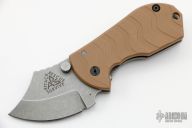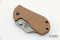 This Prototype custom frame lock folder features a stone wash finished blade with dual thumb studs. Desert tan G-10 and stone washed titanium frame and pocket clip for tip up carry. Strong lock up, nice detent and blade seating. Nice little folder with perfect function. Excellent condition. Comes with zippered case.