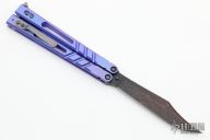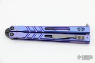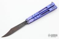 This Alpha Beast Balisong from Blade Runner Systems (BRS) features an acid etched bowie blade. The handle has a millled and anodized titanium, has a T-latch. Tip up reversible titanium clip. Comes with original zippered case and papers. Excellent condition.