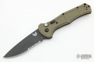 An explosive design, bound to take the battlefield by storm. The 9070SBK-1 Claymore is a slender push-button powerhouse, packed full of hidden features and inspired by one of the most notorious directional mines. Incorporating this air-hardening tool steel to Benchmade’s portfolio of premium materials, the Claymore blade has been crafted from CPM-D2 to provide ample toughness and edge retention. Manufactured in the USA, the Claymore has set the standard for closed break strength making this Benchmade's toughest folder to date. Comes with original box and papers. Excellent condition.