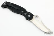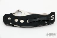 This ATR 2 by Spyderco features a satin finished 3.5" blade with thumbhole and notched thumbdisc. The handle has black G-10 scales with stainless steel liners and a tip up reversible black stainless steel clip. 8.5" overall and 5.125" closed. Nice detent, lockup and blade seating. Comes with original box and papers. Excellent condition.