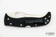 This Chinook 4 from Spyderco features a satin finish blade with thumbhole. The handle has textured black G-10 scales with stainless steel liners and backspacer, 4-way reversible black stainless steel clip. Built like a tank for EDC, survival, and martial arts use. Excellent condition. Comes with original box and papers.