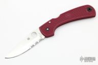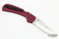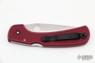 This C16PS Wayne Goddard design features a satin finished partially serrated blade with thumbhole. The handle has burgundy FRN scales, tip down black stainless steel clip and a stainless steel backspacer and lockbar, lanyard hole at the butt. Excellent condition.