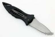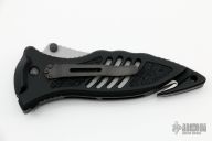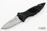 This CQD Mark 1 Auto from Masters of Defense has a spear point bead blasted blade with dual thumb studs. Handle is black aluminum with non-slip inserts, reversible black tip down clip, seat belt cutter, lanyard hole and glass breaker. Comes with original box, sheath and papers. Excellent condition.