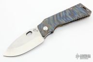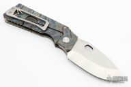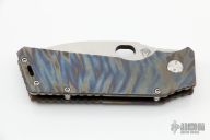 The TFF-1 by Medford Knife and Tool features a stonewashed drop point blade with thumbhole and notched thumbrest. The handle has a flamed and tumbled thick titanium frame with a stonewashed titanium tip up clip. Excellent condition. Comes with original box and papers.
