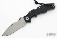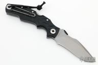 The Alpha Two folding Outdoor Knife by Pohl Force has a bead blasted blade with a notched thumbrest and a thumb disc. The handle has black FRN scales, stainless steel liners and backspacer, tip up reversible clip. Comes with original box, zippered case and papers. Excellent condition.