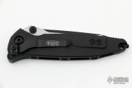 This Socom Elite manual linerlock folder by Microtech Knives has a two-tone black tanto blade with notched thumbrest and dual thumbstuds. Has a black aluminum handle with non-slip inlays, tip down black stainless steel clip and hardware. Serial number 10393 and dated 06/2022. Comes with original box and papers. Excellent condition.