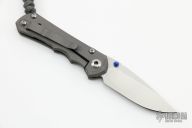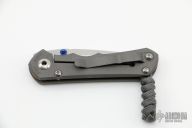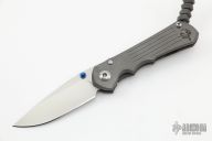 This Small Inkosi from Chris Reeve Knives features a tumble finished drop point blade with dual anodized thumb studs and notched thumbrest. The handle has a bead blasted titanium frame over a single barrel spacer with a matching bead blasted titanium tip up clip. Includes original box, paperwork and accessories.  Maker's card dated March 29, 2022. S45VN Blade Steel.  Excellent Condition.
