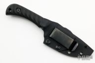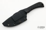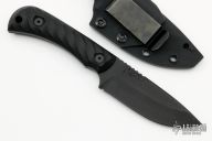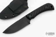 This Cav Jr by Half Face Blades features a black coated blade with a notched thumbrest, .165" blade stock, 1.229" blade depth, full tang construction.  The handle has black G10 scales.  Comes with a kydex sheath with clip. Includes the original box and papers.  Excellent condition.