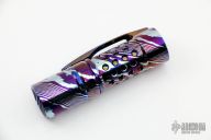 This classy light from The Barrel Flashlight Company features a MokuTi body, ring sleeve, and clip. From the makers site: Barrel Flashlight Co. flashlights are proudly made in USA. Our lights are turned from solid round bar. About 1000 lumens on high depending on LED’s selected Triple LED output with builds with Cree XP-L HI 5K. The “ pill “ that houses the LED’s and driver is machined from solid for optimum performance and heat transfer. Light measures 3.5 inches long and just under 1 inch in diameter. Light runs on an Efest high capacity 700mAh 16340 unprotected button top rechargeable IMR battery. Interchangeable barrel rings, barrels ( inner sleeve), clips, and screws to customize your light and ability to match your EDC. Light is built with one of the most advanced drivers on the market: the fully programmable H17F with battery monitoring. The H17F comes in a very user friendly set default of moonlight, low, medium, and high. Rear “ clicky “ button cycles light through modes. For the avid flashlight hobbyists , a secret hidden mode can be entered to program the light. Light is water resistant. Light tailstands very well. Comes with original packaging, and signed/dated certificate of authenticity dated 06/19. Excellent condition.