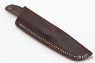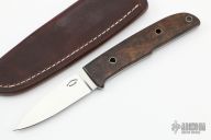 This Hunter by Dietmar Kressler features a hand rub satin finished blade with .132" blade stock and .864" blade depth, full tapered tang construction. The handle has desert ironwood burl scales. Comes with a brown leather sheath, zippered case and COA. Excellent condition.