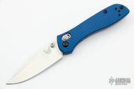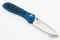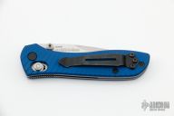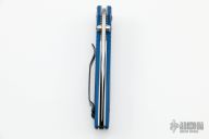 This 707-1701 Sequel by Benchmade was made exclusively for the 2017 SHOT Show. It features a tumble finished drop point S30V blade with swedge and dual thumb studs. The handle is comprised of blue anodized and sunburst machined aluminum scales over stainless steel liners and black FRN backspacer. Black coated reversible tip up clip. Excellent condition. Includes original box and drawstring pouch. This knife is # 631of a limited edition of 1,000.
