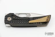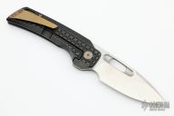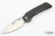 This Nymble Framelock Flipper by EMP EDC features a satin finished blade with notched thumbrest and flipper, and a thumbhole. The handle has a black tumbled and frag pattern milled frame, anodized titanium backspacer and tip up clip. Comes with original box. Rides on bearings, nice detent, lockup and blade seating. Excellent condition.