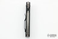 Ernie Emerson says "Symmetry, Grace, and Power. These three words describe the Emerson Model A100 knife perfectly. When I first started making knives, before “Tactical”, I was making this pattern. I liked it then just as much as I like it now. This knife became the archetype from which all of my other designs have evolved . It is the “Father” of all my tactical designs. In fact it might be the “Grandfather” of all tactical knife designs that now exist. It’s simple, it works, and it never gives up. See for yourself." This knife has a stonewashed spearpoint blade with thumbdisc. The handle has textured black G-10 scales, titanium liners, black G-10 backspacer and a tip up stainless steel clip. S/N 0006. Excellent condition. Comes with original box and papers.