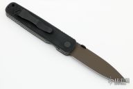 Ernie Emerson says "Symmetry, Grace, and Power. These three words describe the Emerson Model A100 knife perfectly. When I first started making knives, before “Tactical”, I was making this pattern. I liked it then just as much as I like it now. This knife became the archetype from which all of my other designs have evolved . It is the “Father” of all my tactical designs. In fact it might be the “Grandfather” of all tactical knife designs that now exist. It’s simple, it works, and it never gives up. See for yourself." This A-100 BT by Emerson Knives features an OD Green coated spear point blade with swedge and knurled thumb disc. The handle is comprised of black G-10 scales over titanium liners and black G-10 backspacer, black coated steel tip up clip and positioned for tip up carry with lanyard hole in pommel. S/N of "SPECIAL" and dated 2009. Comes with original box. Excellent condition.