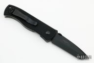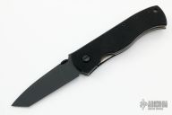 This production CQC-7 by Emerson has a black tanto chisel ground blade with a right hand grind. Black G-10 scales, titanium liners, barrel spacers, milled thumb disk and a tip up black stainless clip. Excellent condition. S/N x-018. Includes original box and papers.