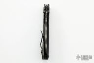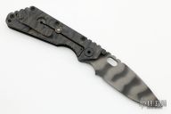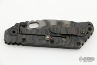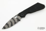This SMF framelock folder by Strider features a tiger stripe blade and a black G-10 flamed titanium frame and tip up titanium clip. Includes a Hinderer "Lock Bar Stabilizer" for maximum reverse lock retention. Nice detent, lockup and blade seating. Has a few light scuffs, otherwise excellent condition.