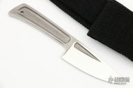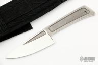 The Boye Basic 3 is a powerful working knife for the ocean environment, designed for maximum versatility, strength, and compactness. Has a Dendritc Cobalt blade with .256" thickness and 1.419" blade depth. Integral construction for lightness and strength. Comes with a black nylon sheath with brass liner (original). Has some light scratches, excellent condition otherwise.