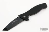 This hybrid knife is the result of crossing the world standard CQC-7 and the hardcore SPECWAR knife. This crossbred knife is a direct result of specific requests by operators who wanted the proven characteristics of the CQC-7 blade, the size and handle ergonomics of the SPECWAR knife and the "wave shaped feature" opening (remote pocket opener) of the Commander knife."