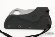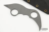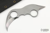 This Military Karambit by Black Cloud is a Laci Szabo design features a bead blasted chisel ground blade with notched thumbrest, .242" blade stock and 1.520" blade depth. Comes with a kydex sheath. Has a few light scuffs, otherwise excellent condition.