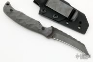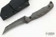 This Pikal by Half Face Blades features a black stonewashed blade with a textured spine, .149" blade stock, .895" blade depth, full tang construction.  The handle has gray G-10 scales.  Comes with a kydex sheath with clip. Excellent condition.