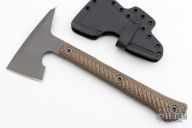 The Jenny Wren Spike offers full tang construction and 1/4" 80CRV2 carbon steel (57-58 HRC) is used in its construction. 3D contoured G10 handle scales are incorporated for grip and durability. The tomahawk has a Tungsten Cerakote finish that facilitates greater resistance to wear, corrosion, chemical and impact damage, as well as providing a low visibility look.