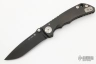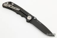This framelock folder by Spartan Blades features a black PVD finished drop point S45VN blade with dual thumbstuds and a notched thumbrest. The handle has a black PVD finished titanium frame with tip up titanium clip. Has nice detent, lockup, and blade seating. Comes with original box and papers. Excellent condition.