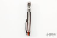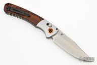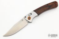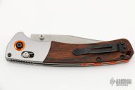 Benchmade Hunt series knives make hunting chores a breeze with a combination of high performance materials and knife design know-how. The Crooked River folder employs premium CPM-S30V stainless steel, for a long-lasting, super sharp cutting edge. The handle of the 15080-1 Crooked River is outfitted with tumbled titanium bolsters and contoured wood scales over stainless steel liners. An orange G-10 backspacer and anodized aluminum pivot ring add a visual pop to this modern hunting knife. The Crooked River has the ambidextrous AXIS lock, a reversible pocket clip, and thumb stud openers to cater to every user. Excellent condition. Comes with original box and papers.