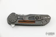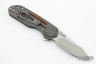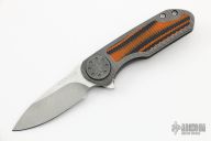 This Warhawk 275 by Curtiss Knives features a two-tone blade with notched thumbrest and flipper. The handle has a milled and tumbled titanium frame with orange/black G-10 inlays, tumbled titanium tip up clip. Smooth and fast opening using a Caged Bearing System. Nice blade seating, detent and lock up. Excellent Condition. Comes with zippered case and COA dated 4-26-21.